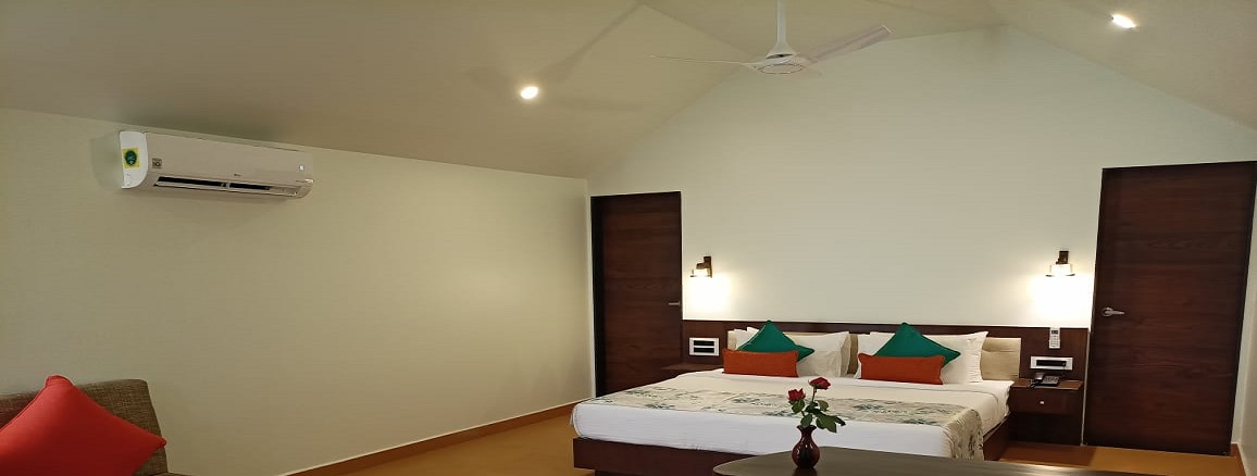 Feel the warm and cozy Breeze coming from the beach as you relax in the spacious Arebian sea view Cottage overlooking the Arabian sea with private Balcony. The living room size is 316 sq. ft. with king sized Bed.